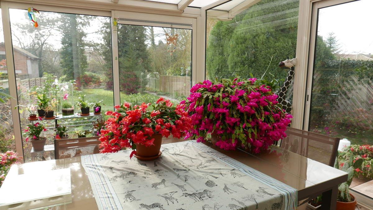 comme je venais de sortir les agrumes , j'étais en forme pour installer le gros rose sur la table pour une photo .Le soleil était revenu et les fleurs étaient soyeuses à la lumière .La floraison est à sont apogée , de même que pour Amazonas Brazil , dont les fleurs sont du même type : assez trappues et retombantes .