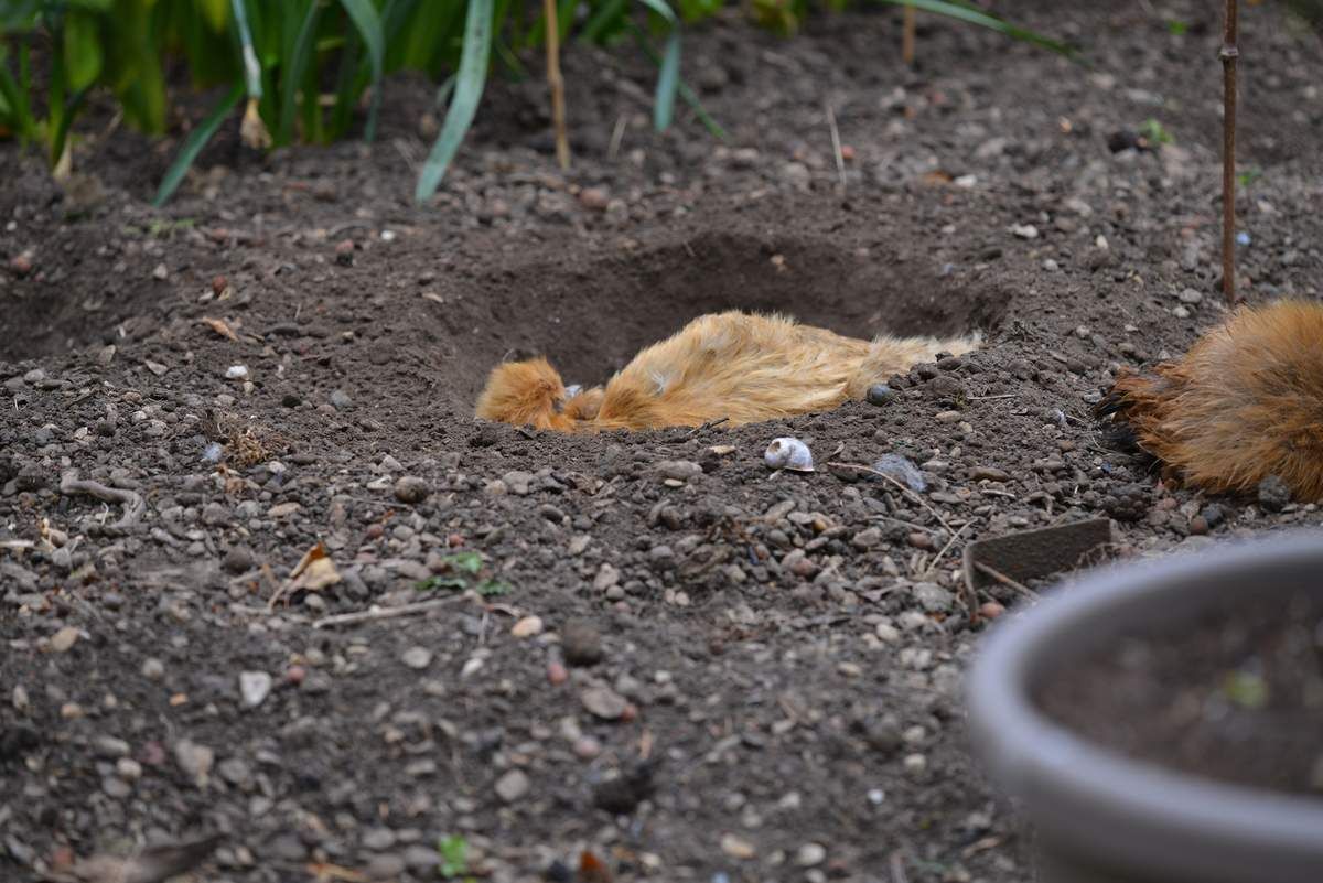 les poules évoluaient en toute liberté dans le jardin depuis quelques semaines , une façon durable de nettoyer le jardin . Elles vont bientôt regagner un espace plus délimité , car je viens de planter des dahlias et de la façon dont elles creusent , ils ne tarderaient pas à se retrouver à l'air !