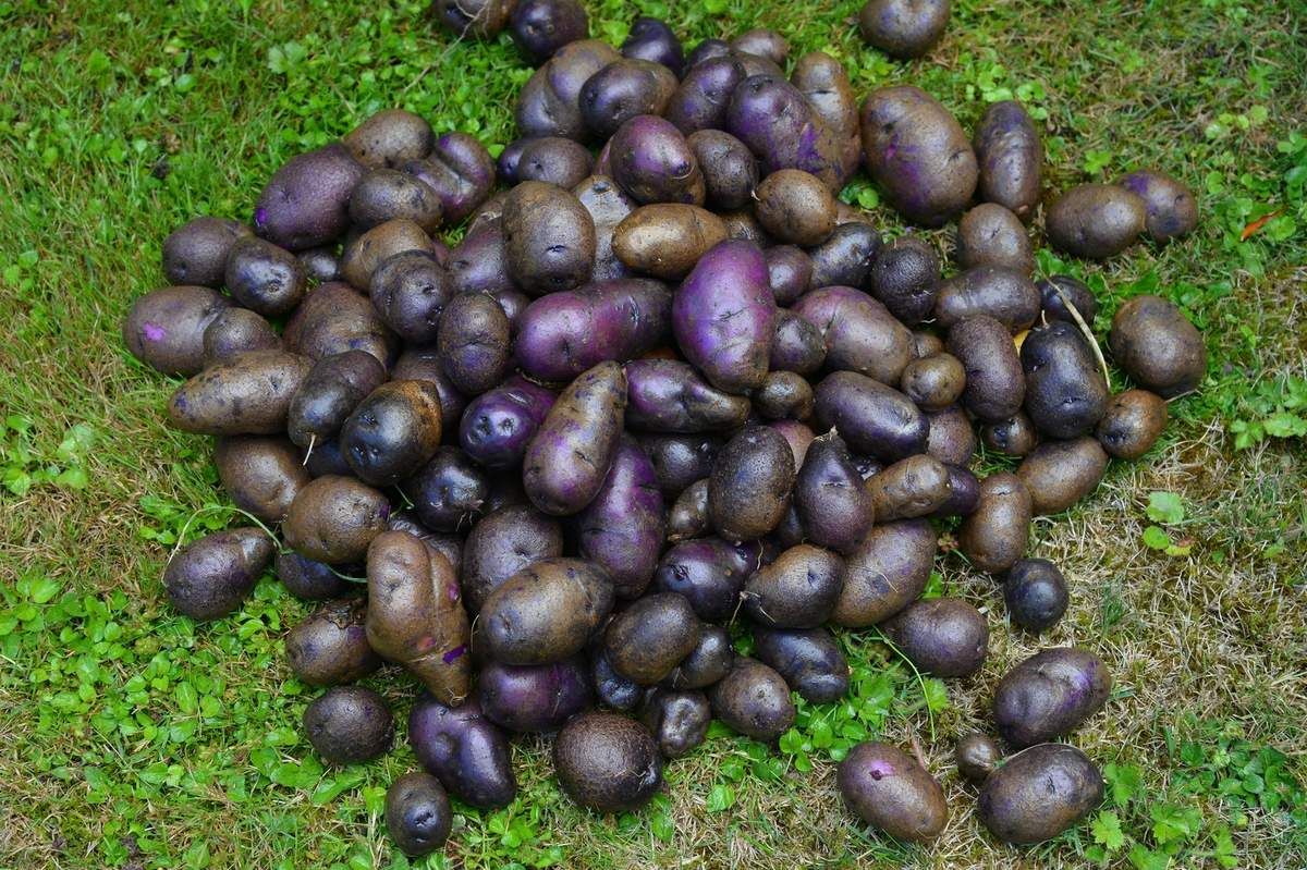 J'en ai profité pour déterrer les " Bergerac" , une belle espèce de patate bleue pleine d'antioxydants .Les patates bleues ont en général un faible rendement et en plus , elles sont difficiles à récolter car on ne les voit pas dans la terre !